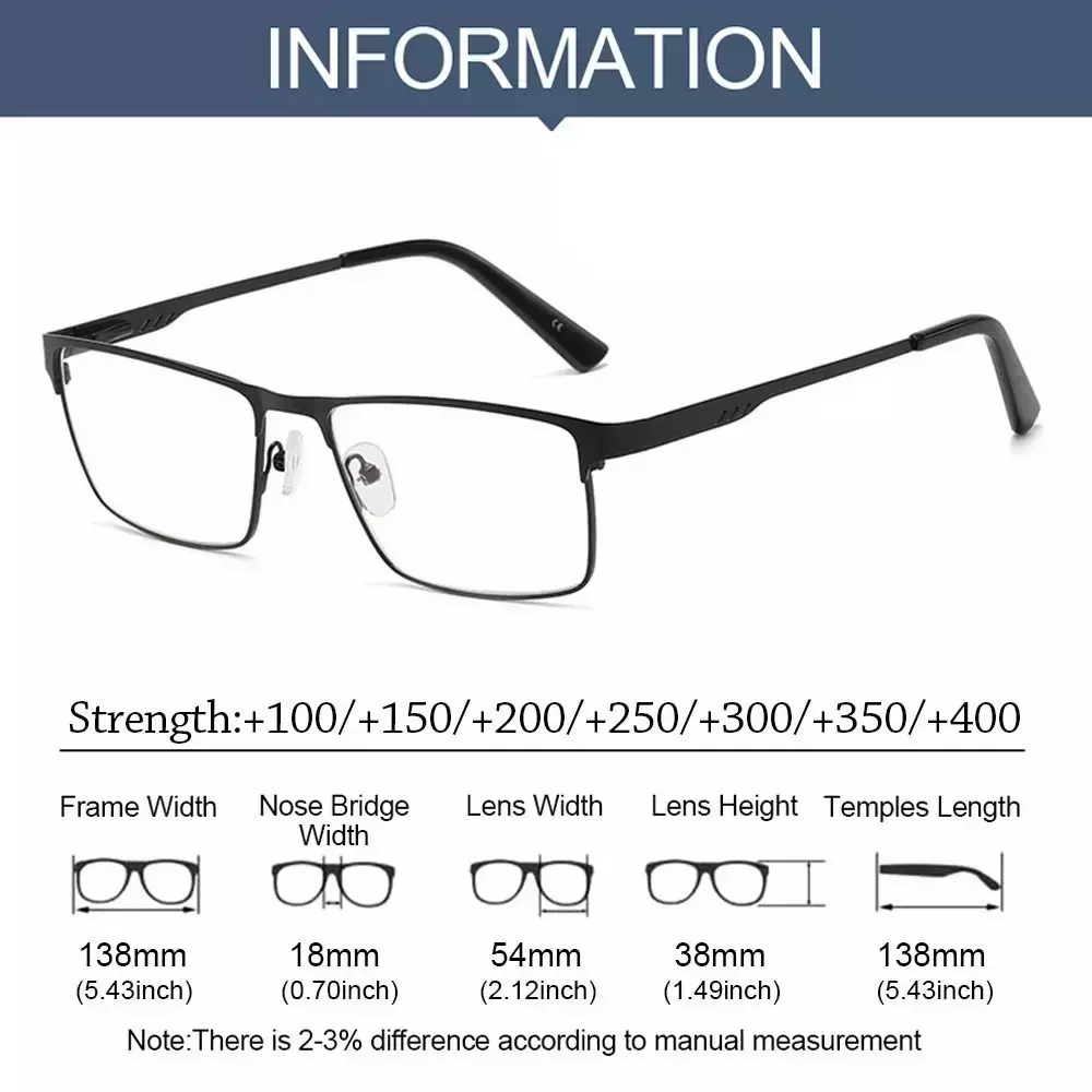 Aproveite agora mesmo essa oportunidade de garantir uma visão nítida, confortável e cheia de estilo com os Óculos de Leitura de Metal Quadrados para Homens. Seja um homem moderno e sofisticado, invista em qualidade visual e não deixe escapar essa oferta única. Adquira já o seu par de Óculos de Leitura Quadrados e transforme a maneira como você enxerga o mundo!