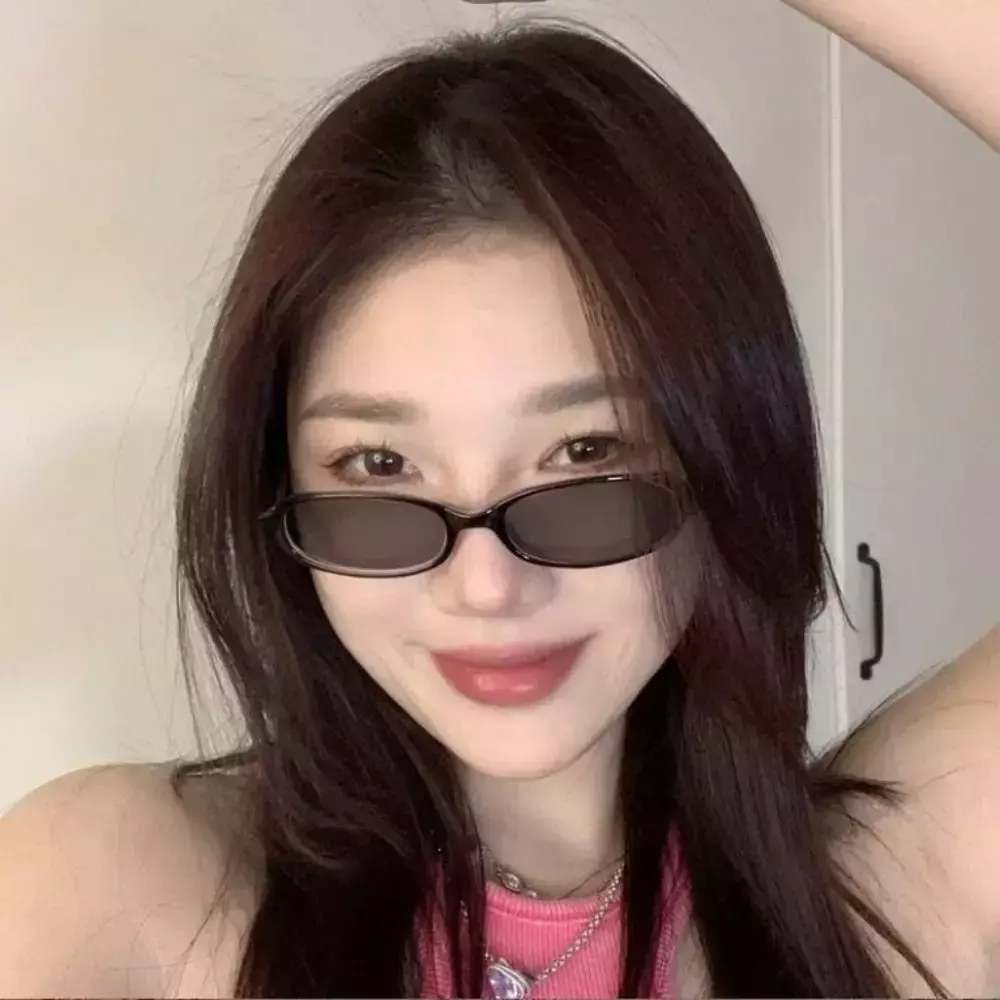 Spice Girl retro narrow oval gradient glasses frame, personality anime concave shape flat light mirror, Y2K trend photography.