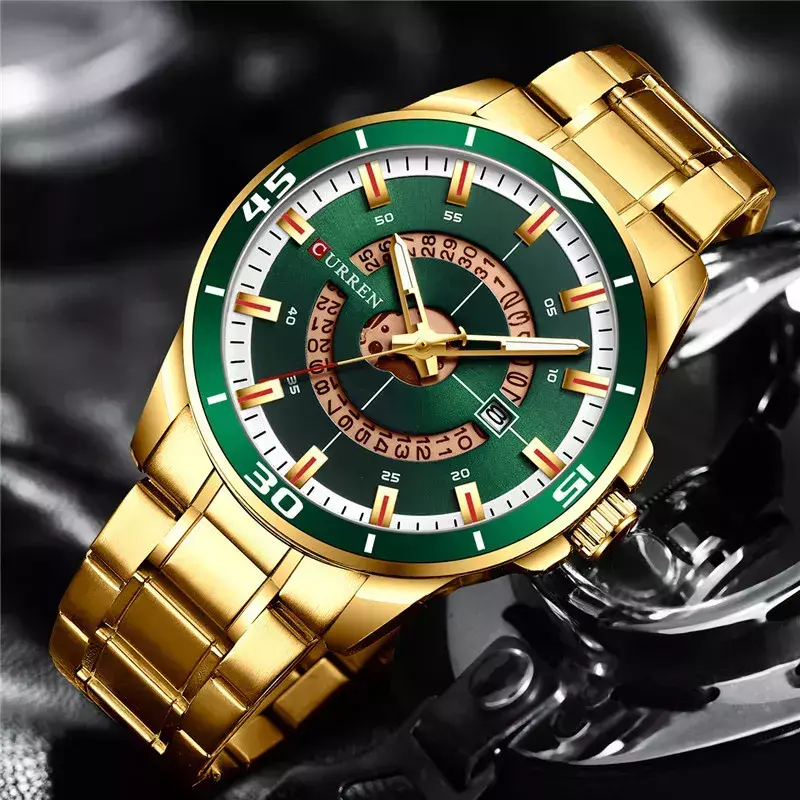 O design deste relógio é verdadeiramente único. Com sua cor dourada militar, ele transmite uma sensação de poder e sofisticação. Seu estilo esportivo combina perfeitamente com um visual casual ou mais formal, tornando-o um acessório versátil para o seu dia a dia. Além disso, os detalhes em dourado adicionam um toque de luxo e exclusividade à peça, fazendo com que você se destaque em qualquer lugar.